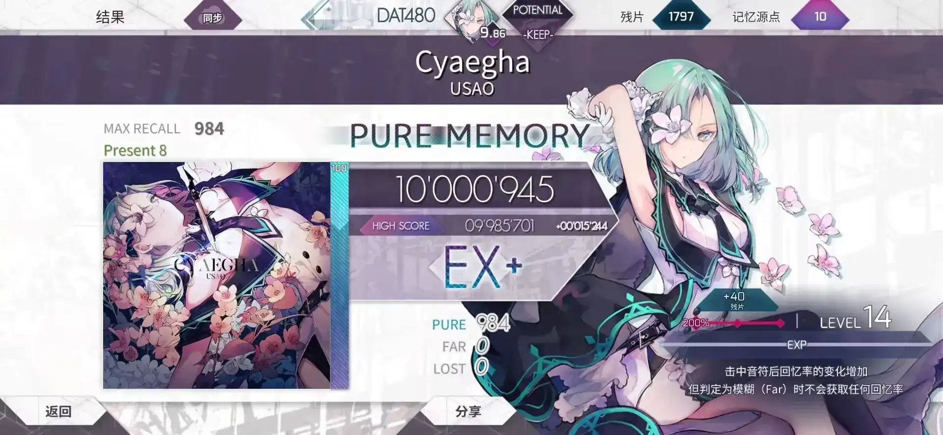 “爷爷现在早就成为了摘星高手了。”我得意地说,“不过最让我记忆深刻的还是最初第一次在阿卡伊里面第一次PM九级难度的那首歌。”