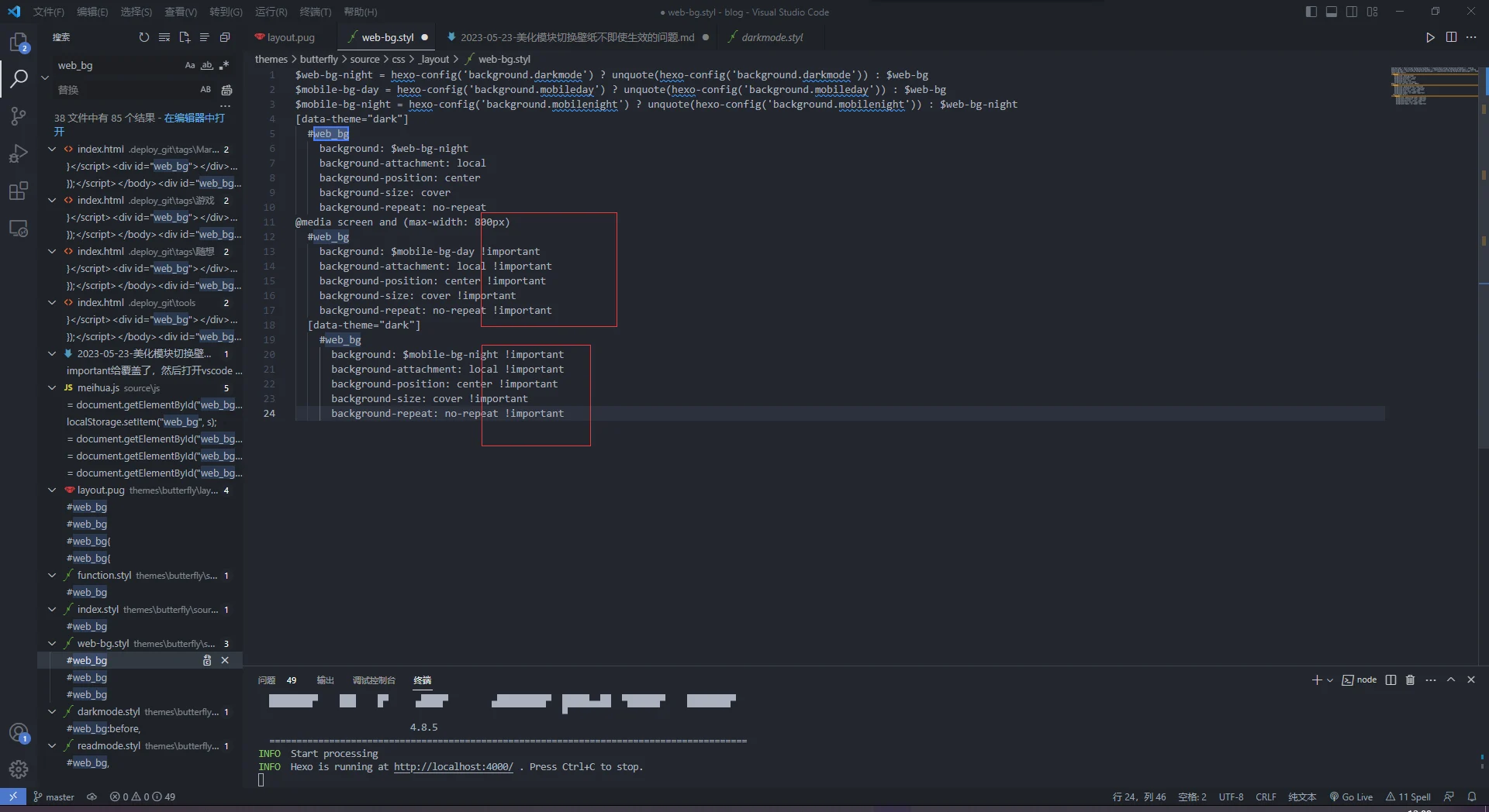 后来发现应该是被其他的 background!important给覆盖了,然后打开vscode 全局搜索web_bg。